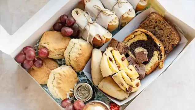 Our afternoon tea for two is the perfect treat for yourself or a birthday gift for your  friends. Packed full of mouthwatering treats, from scones and cakes to filled bagels and fresh fruits, this special occasion box of goodies is sure to please everyone.